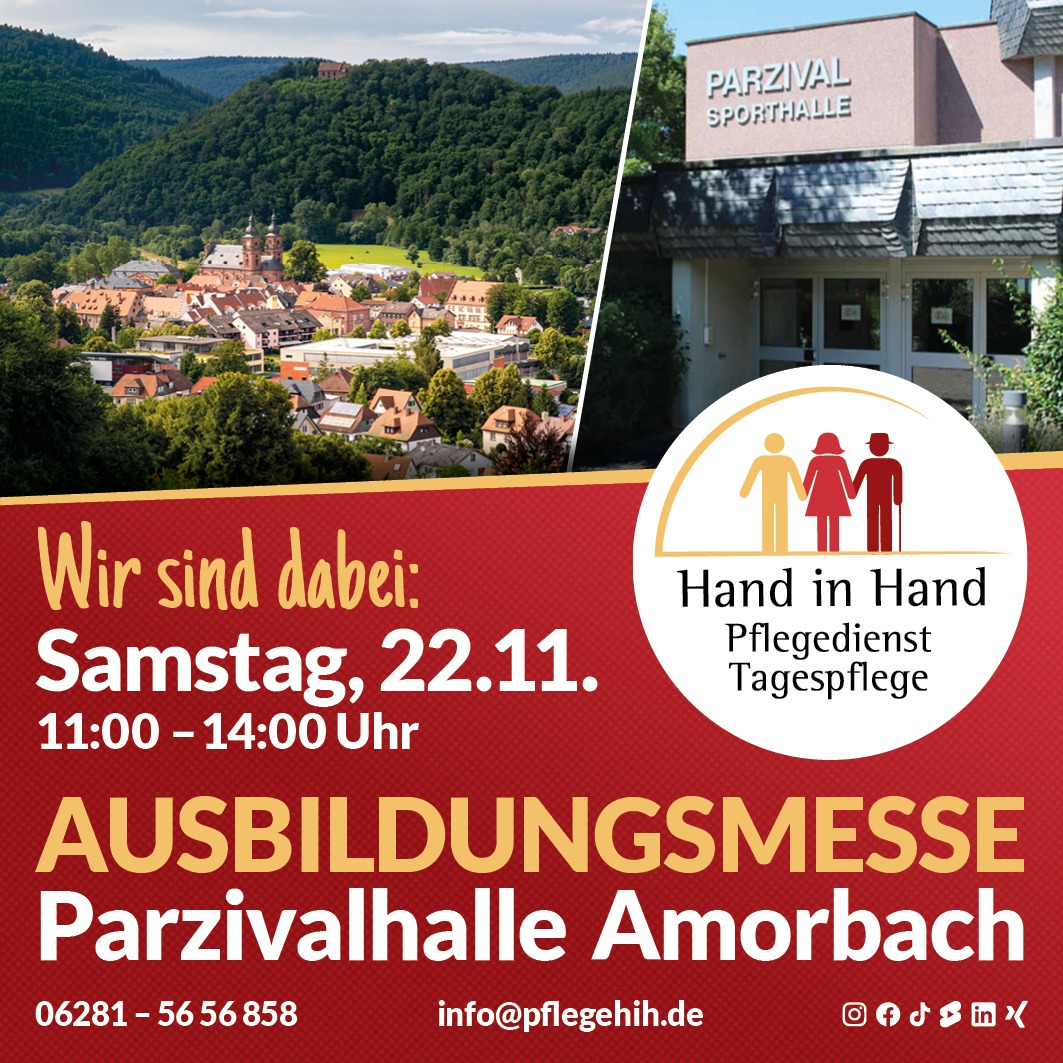 EINTRITT FREI: Wir sind am Samstag, 22.11.2025 von 11:00 bis 14:00 Uhr auf der 18. Ausbildungsmesse in der Parzivalhalle Amorbach für euch da. Lernt uns und unser vielfältiges Angebot kennen!