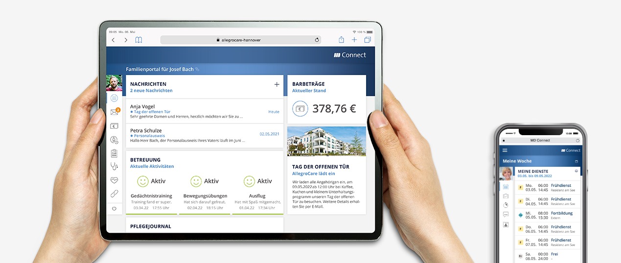 Liebe Klientinnen und Klienten, wir laden Sie herzlich ein, gemeinsam mit uns MD CONNECT und MD SIGN einzurichten. Mit unserer MD SIGN App haben Sie die Möglichkeit, Ihre Leistungsnachweise künftig ganz bequem, zeitnah und digital von zu Hause aus zu unterschreiben. Über unser Onlineportal MD CONNECT können Sie außerdem Ihre Rechnungen jederzeit einfach und digital abrufen.