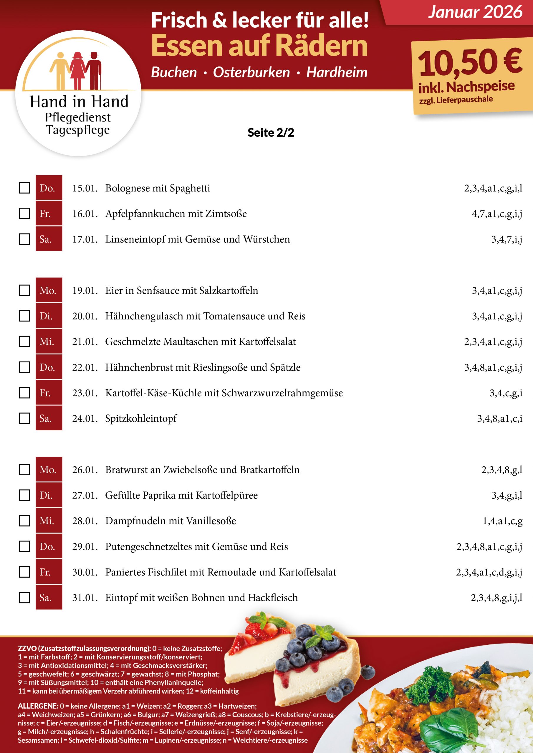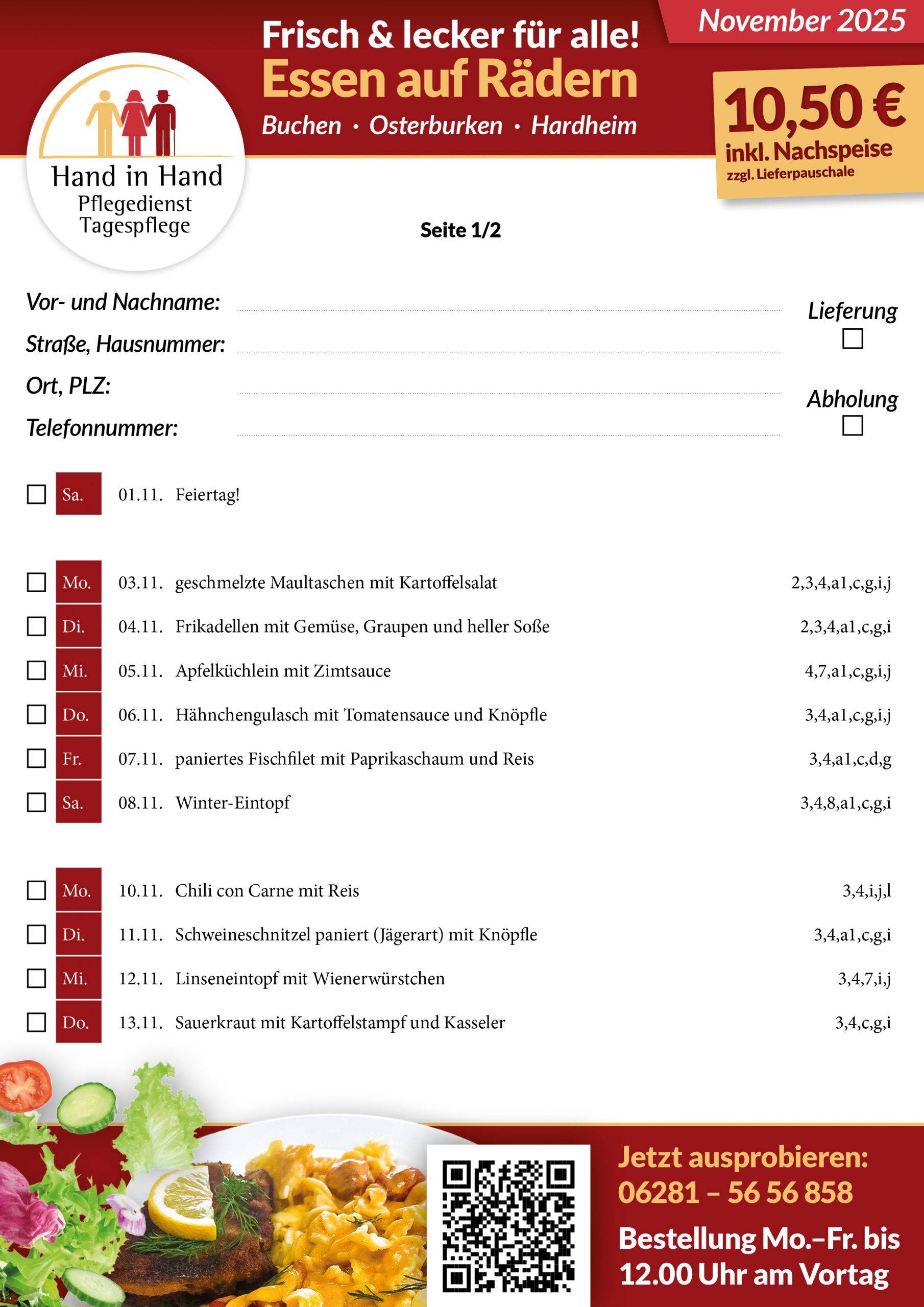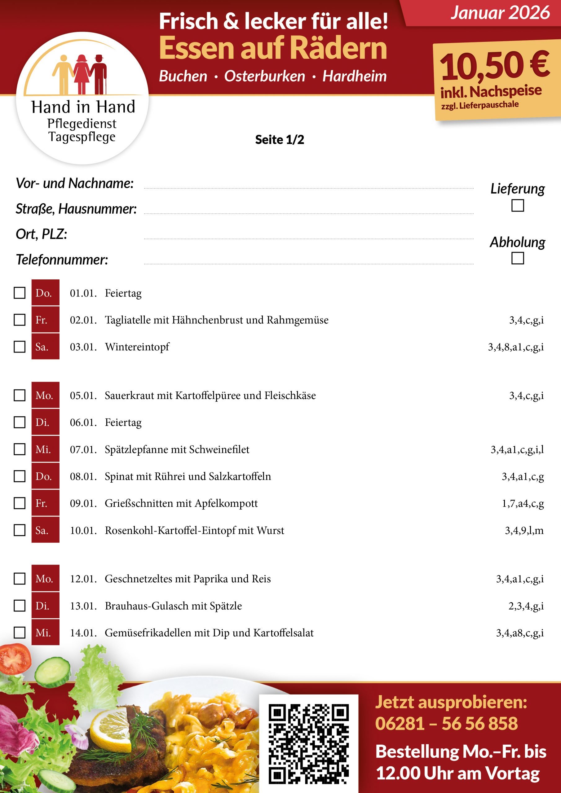 Unsere Menüs für Buchen, Hardheim und Osterburken