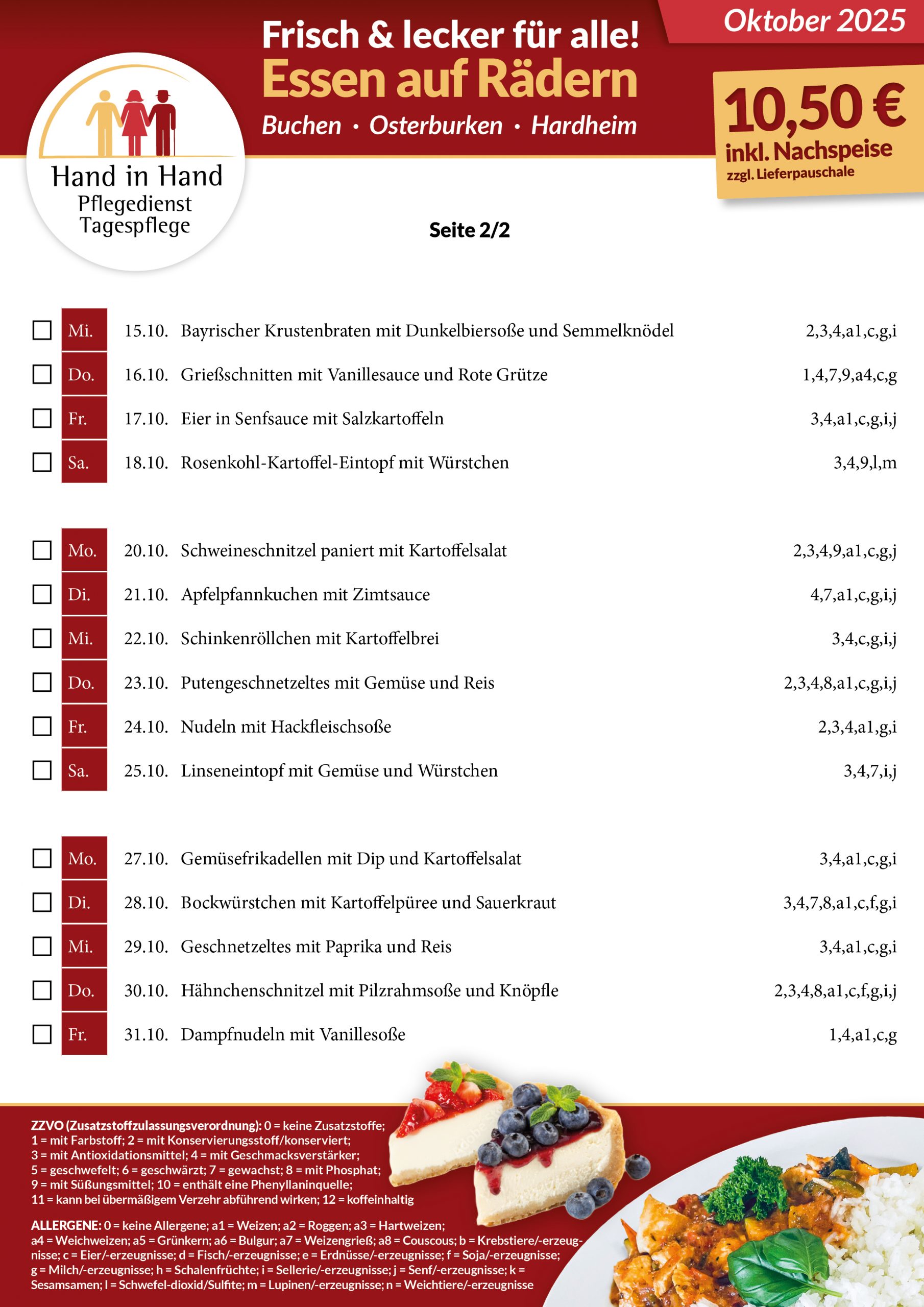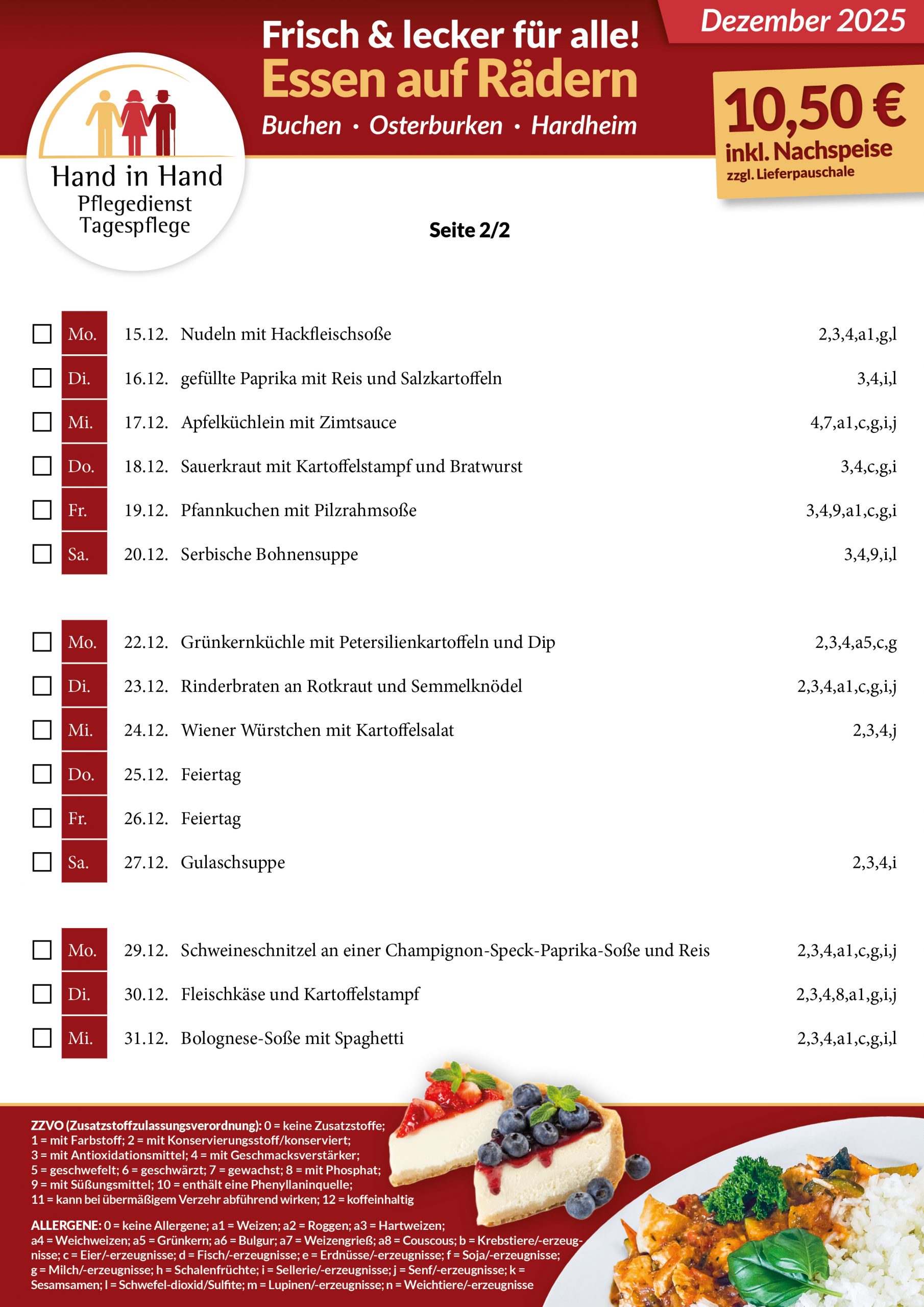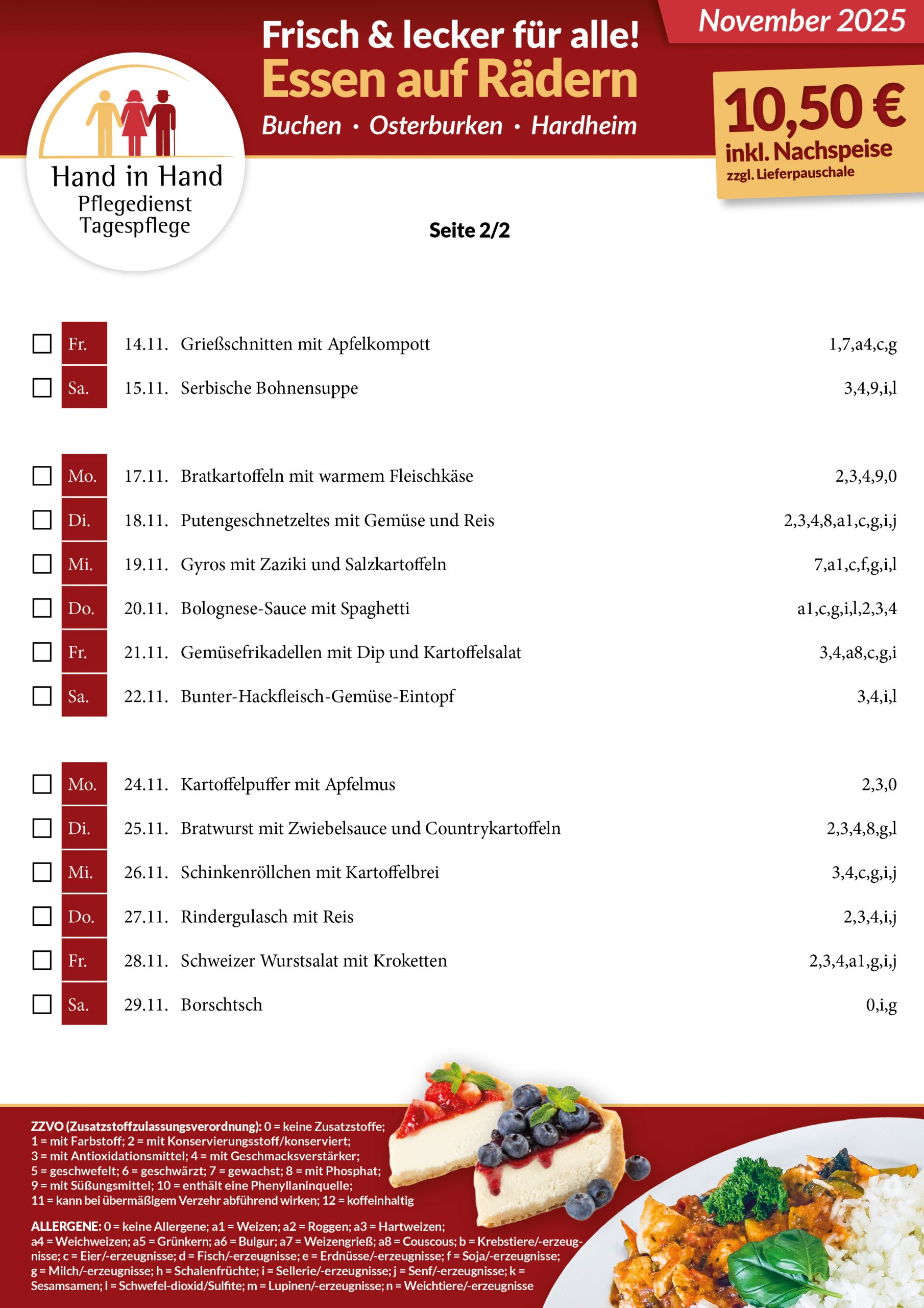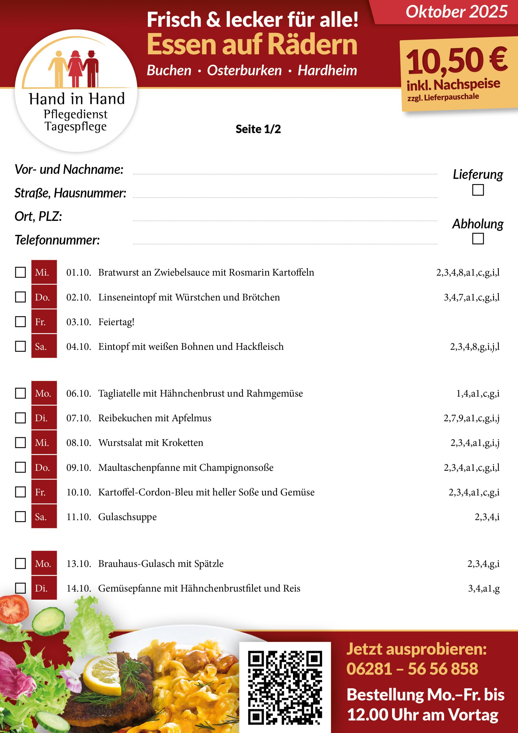 Unsere Menüs für Buchen, Hardheim und Osterburken