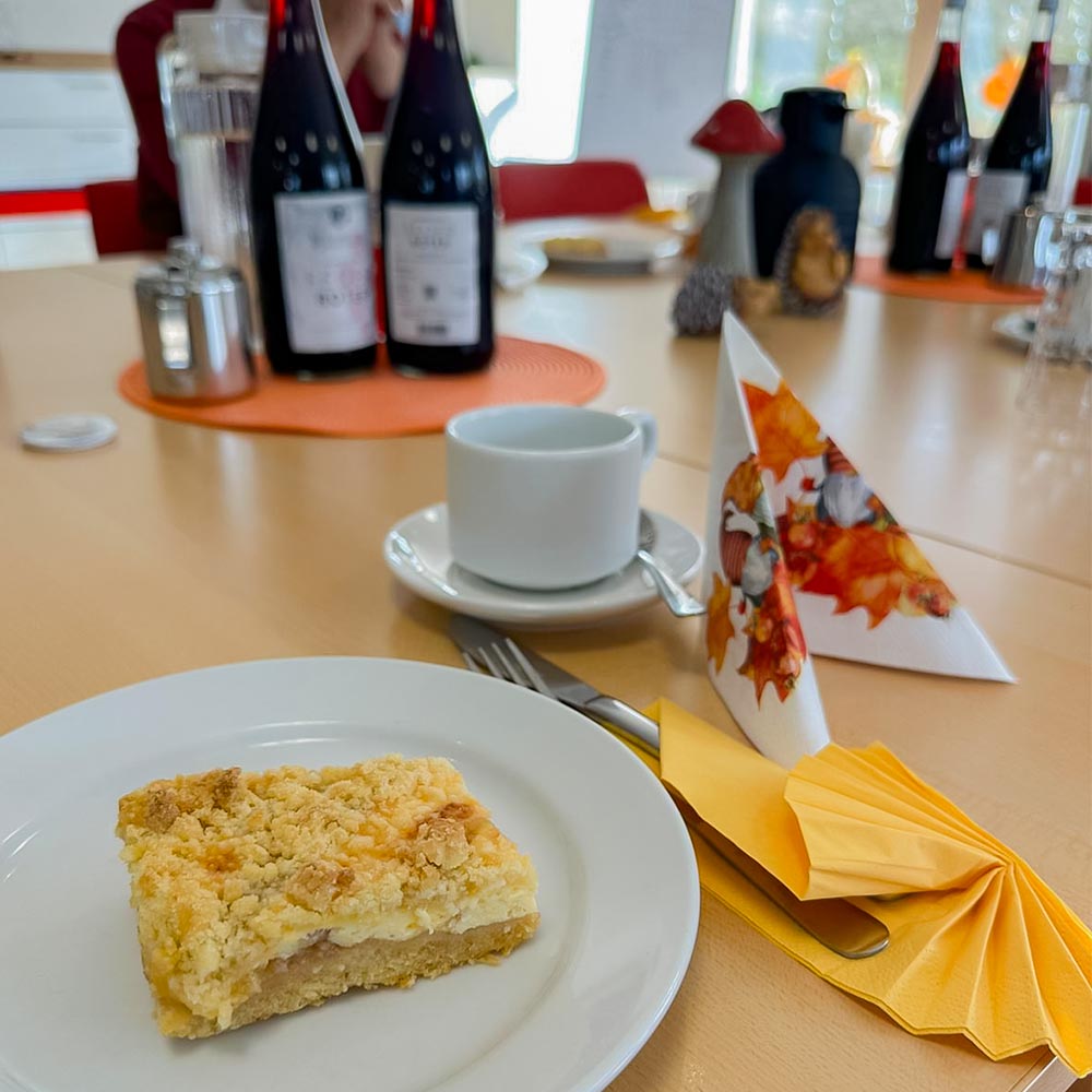 An einem typisch grauen Herbsttag haben wir frischen Zwiebelkuchen gemacht. Dieser wurde im Anschluss mit dem passenden Wein serviert. Dazu haben wir herbstliche Gedichte von Rainer Maria Rilke, Hermann Hesse und Erich Kästner vorgelesen und darüber gesprochen.