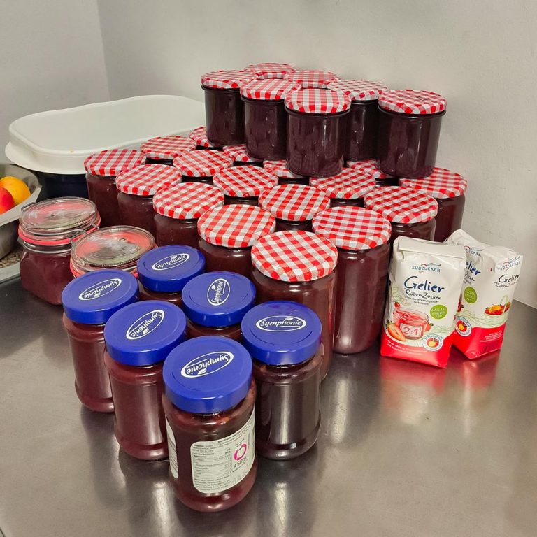Zwetschegenblatz (auch je nach Region bekannt als „Zwetschegenblootz“ oder „Zwetschegenplootz) und Zwetschgenlikör wurden gemeinsam zubereitet. In dem Zuge kochten wir auch zahlreiche Gläser leckere Zwetschgenmarmelade.