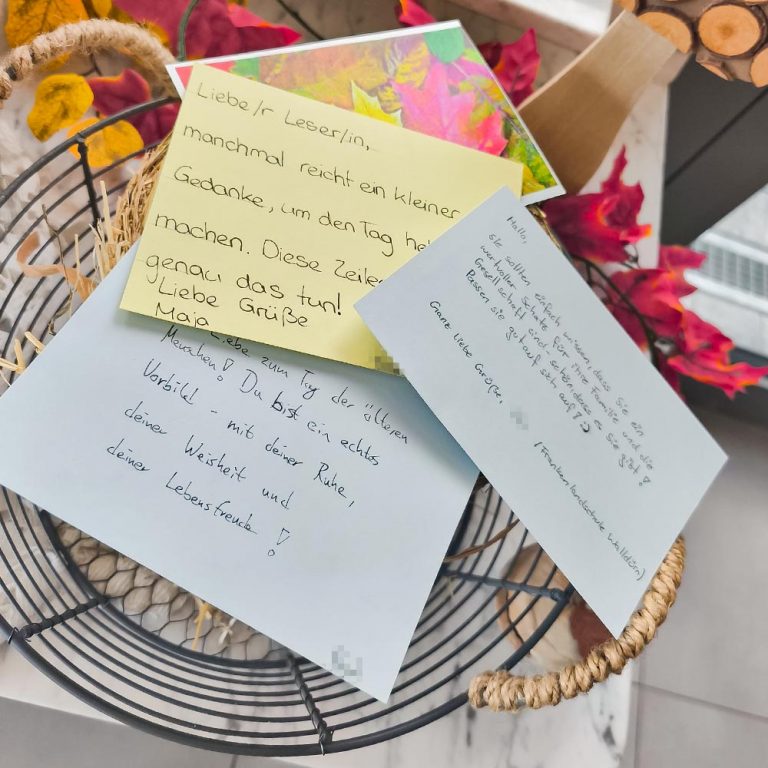 Die handgeschriebenen Karten der Schülerinnen und Schüler zum internationalen Gedenktag für die Belange älterer Menschen rührte unsere Gäste teils zu Tränen. Wir haben uns wirklich sehr über diese Geste gefreut. Vielen Dank auch an Frau Seitz, die uns die Karten gebracht hat.