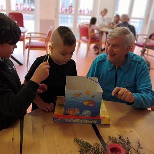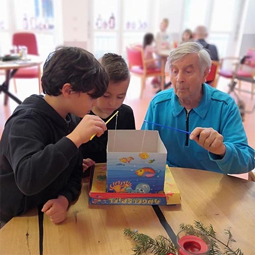Im Kempfegässle genießen die ersten Gäste gemütliches Beisammensein und viel Abwechslung in der neuen Tagespflege.